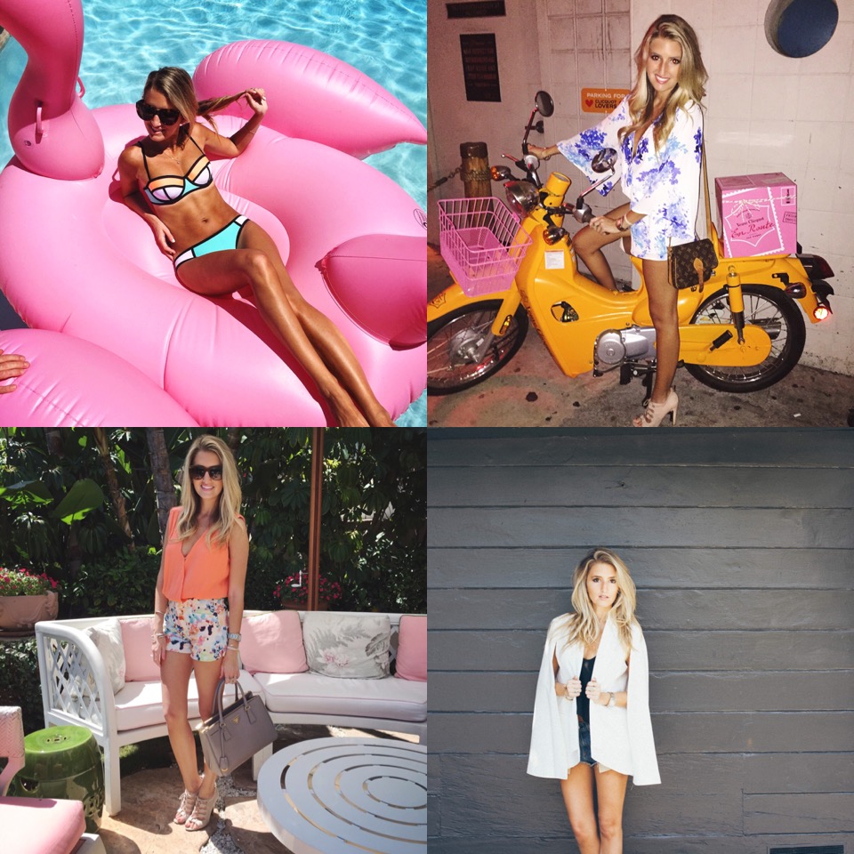 Top Left// Bathing suit: Triangl Swim // Flamingo: Amazon // Romper: Bloomingdales// Shoes: Nordstrom (similar)// Shorts: Trina Turk (similar) // Top: Parker (romper version) // Shoes: Misguided (similar) // Cape: NastyGal (similar)