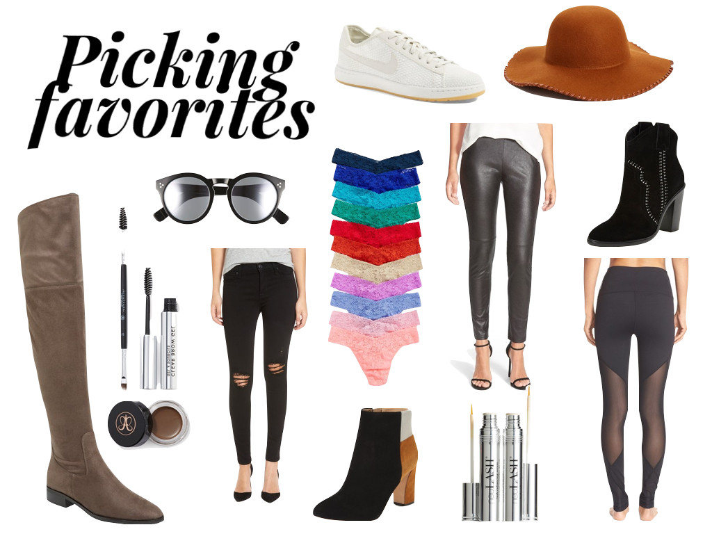 Ivanka Trump over the knee tan boots // Anastasia Beverly Hills Brow Kit //Hudson black ripped jeans // Illesteva sunglasses// Hanky Panky underwear // black and tan BCBG Maxazria booties // Faux leather leggings // NeuLash // Joie black ankle booties // Zella leggings // Nike sneakers // Phase 3 carmel colored hat (comes in 3 different colors)